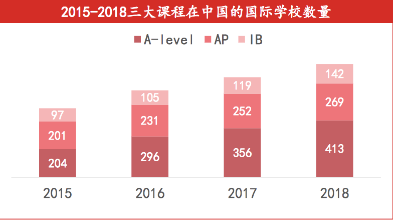 图说:据多鲸资本在2020年发布的《国际教育行业研究报告》中显示,2018年A-level课程市场占有率高达40%,AP课程以26%的市场占有率排名第二,IB课程市场占有率为14%,其他国际课程类别总计占比20%。
