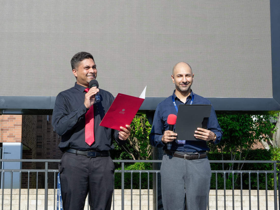 仪式由12年级A班的王嘉源(Jason)和12年级B班的梅须逊(Rebecca)共同主持。随着国歌的奏响,全体师生肃立,少先队员行队礼,共同见证了国旗的升起,展现了对国家的尊重和对责任的承担。